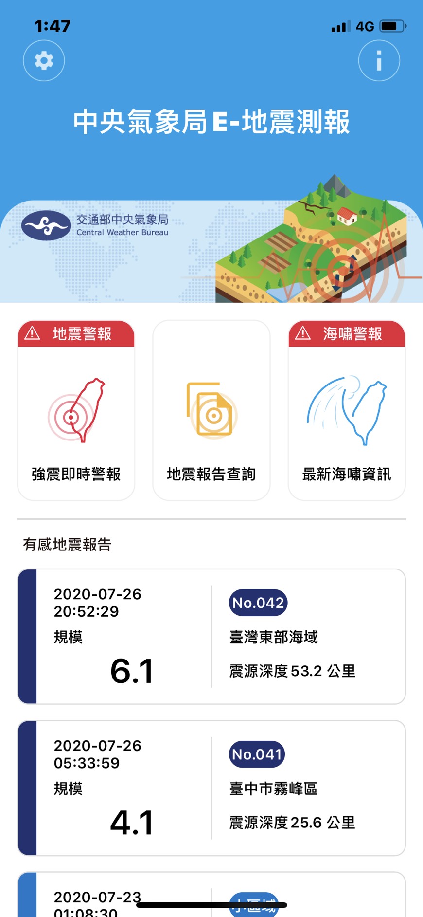 中央氣象署地震速報預警功能,可於地震發生後,破壞性震波尚未到達本市前預先通報民眾。