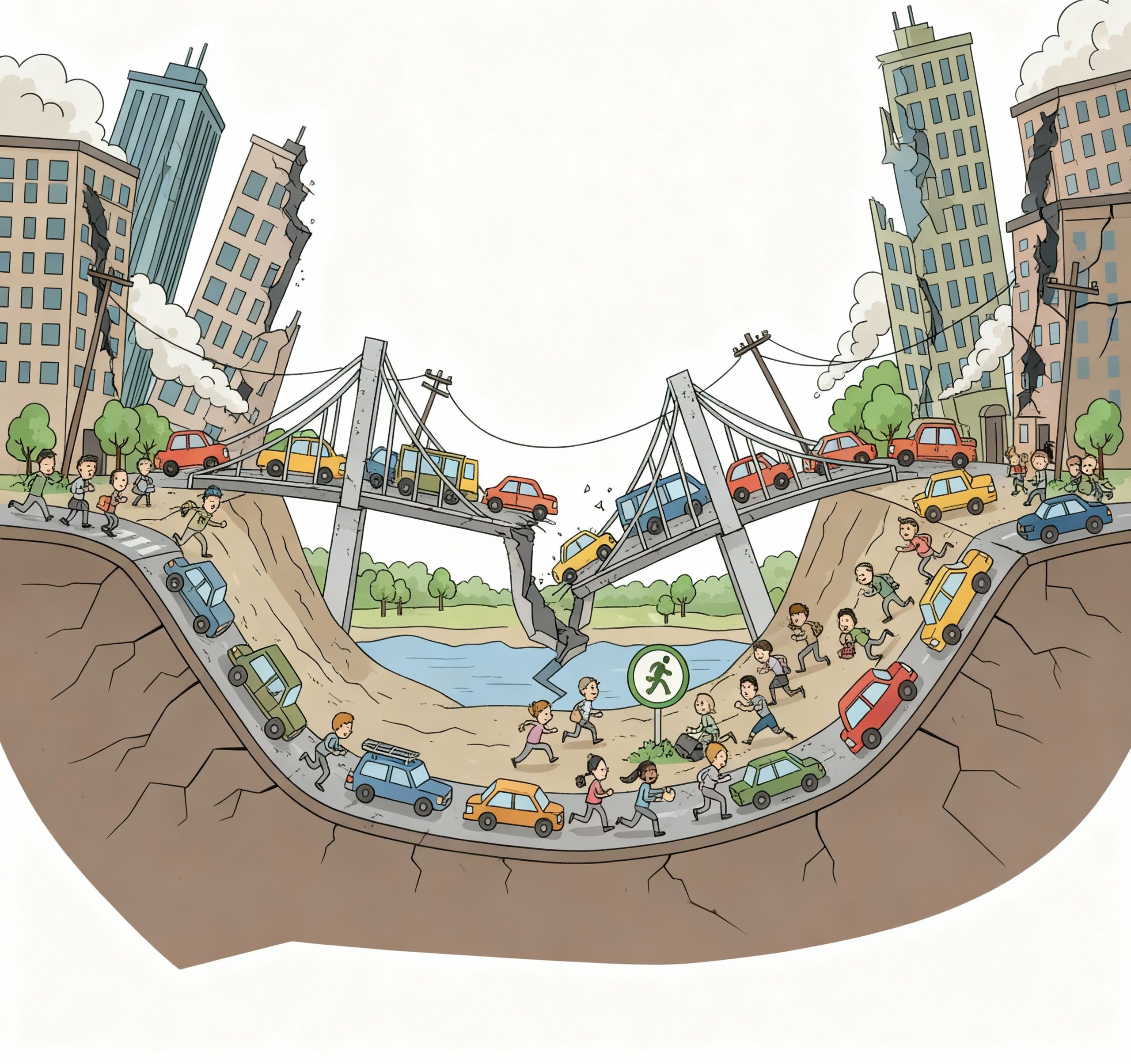 強震可能造成建物損害、交通癱瘓與大規模疏散需求,需提前強化耐震與整備。