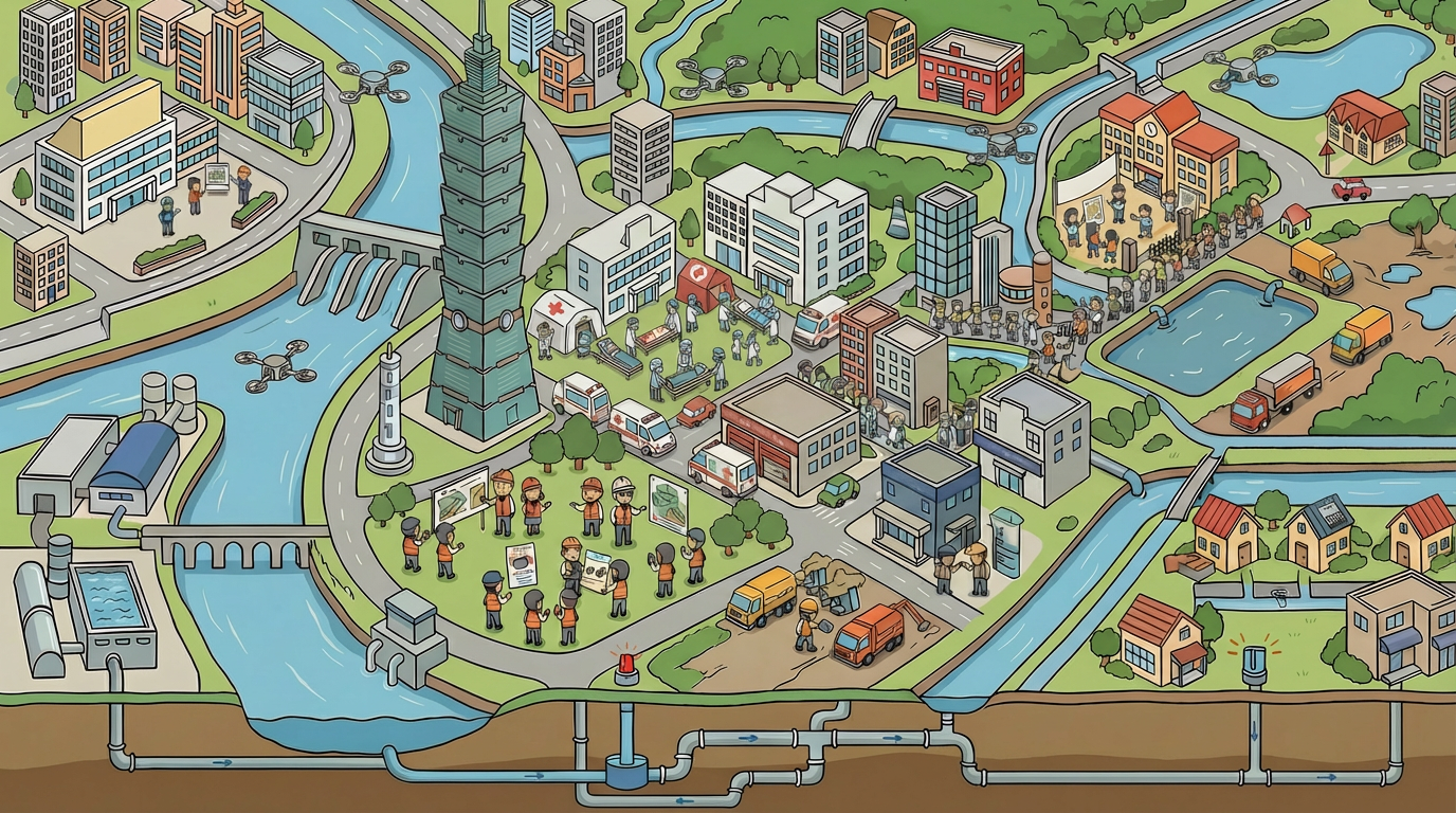 臺北都市人流密集、交通樞紐多,國際交流頻繁,面臨新興傳染病與社區群聚風險,需強化公共衛生防疫體系韌性。